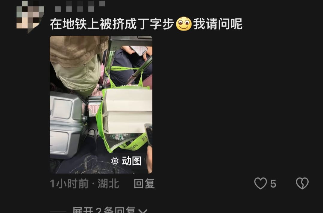 看完节目回家,有网友分享坐地铁实况,称自己被挤成“丁字步”。