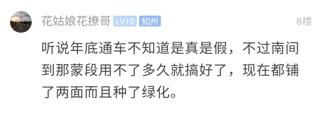 网友:不知道年底能完工通车吗?