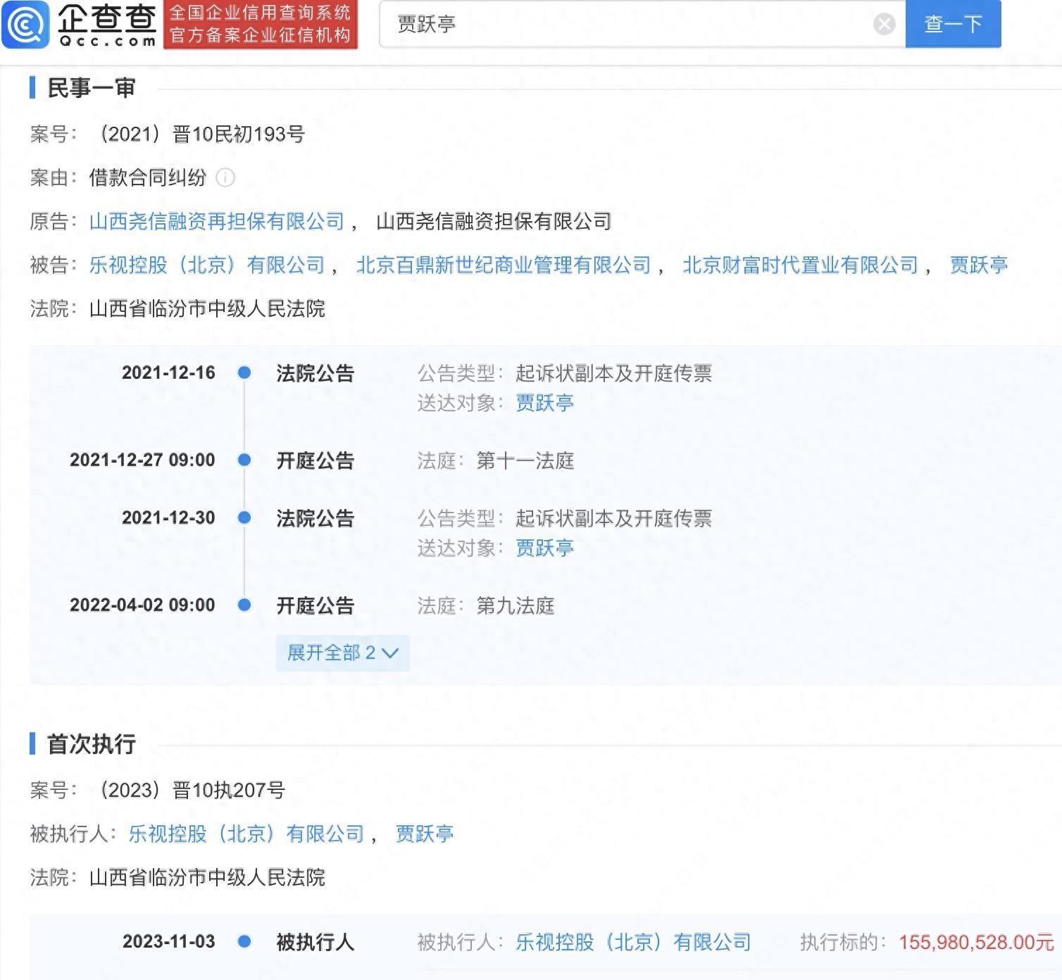 乐视控股陷入巨额借款合同纠纷,贾跃亭面临被强制执行1.56亿元的困境。根据企查查APP的最新数据显示,山西省临汾市中级人民法院已经对贾跃亭及乐视控股(北京)有限公司做出强制执行的决定。这一事件使得贾跃亭所面临的执行款总额已超过10亿元。这是一个引人注目的案例,让我们一起来看看其中的来龙去脉。借款合同纠纷是贾跃亭及乐视控股(北京)有限公司近期遭遇的一大困扰。根据企查查APP的信息,他们被山西省临汾市中级人民法院强制执行了1.56亿元的款项。这意味着他们必须履行合同义务,并偿还相应的借款。而这只是贾跃亭所面临的债务总额的冰山一角。贾跃亭是乐视控股的创始人,也是这个公司的灵魂人物。