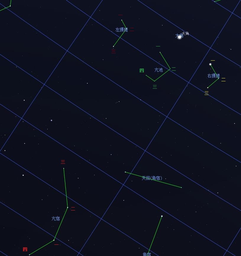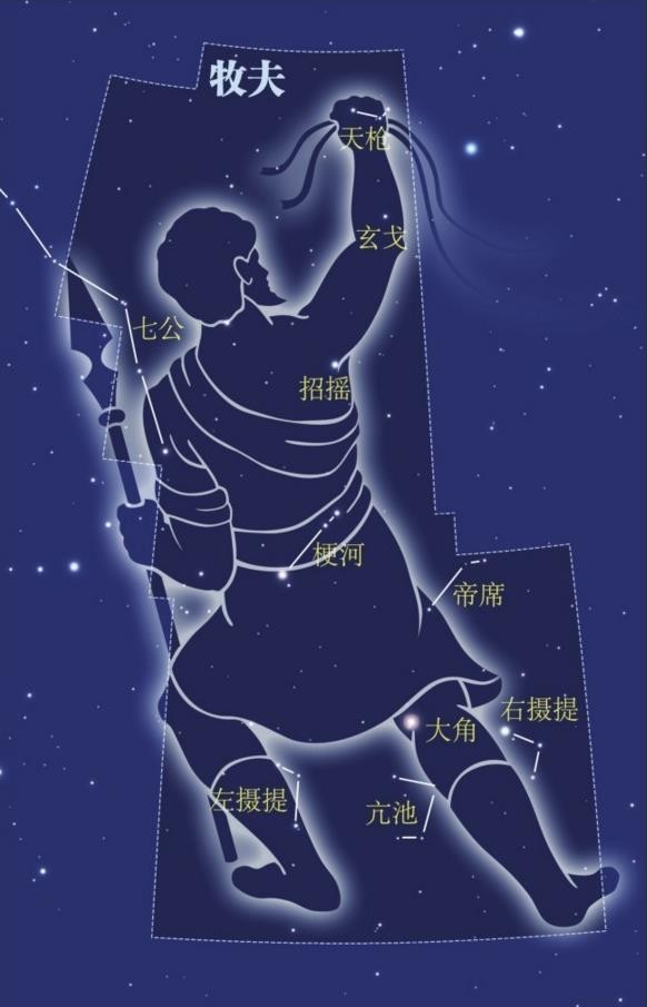 左摄提:共3星,后增4星,属于牧夫座。是定季节的官员。