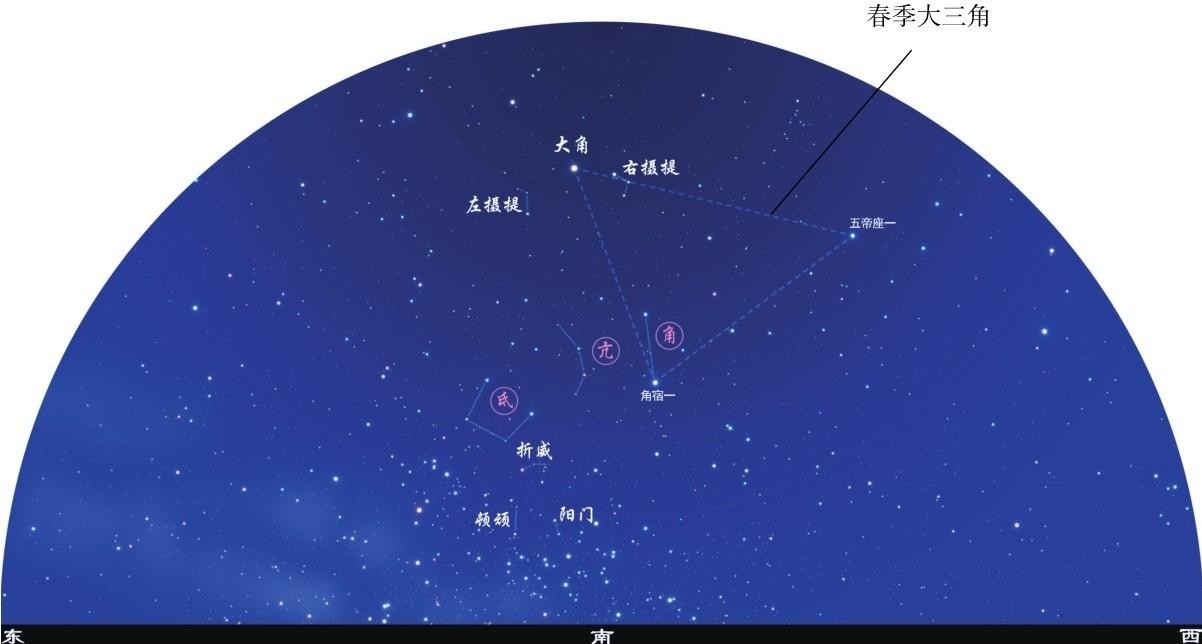 又名天栋,被看作是天王的帝廷。《史记·天官书》说:"大角者,天王帝廷。"《晋书·天文志》说:"大角者,天王座也,又为天栋。"