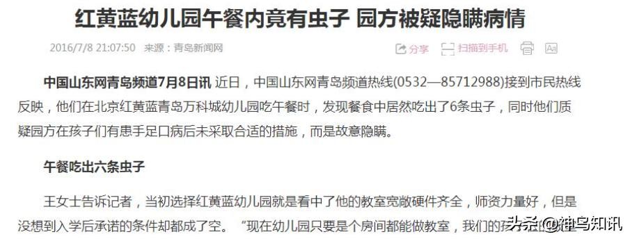 青岛红黄蓝万科城幼儿园:2016年6月,青岛红黄蓝万科城幼儿园共有16名孩子不同程度地出现手足口病的症状。
