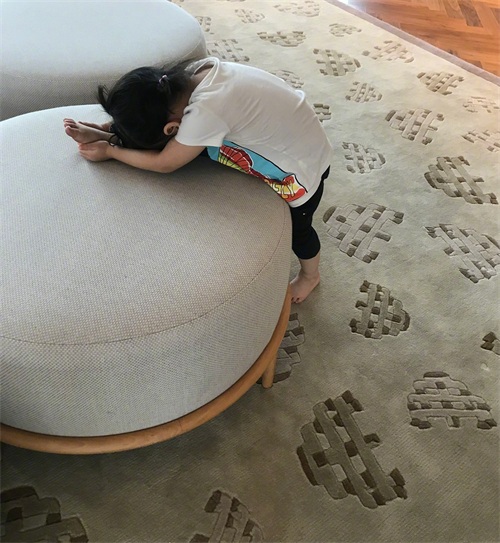 醒宝也相当有上进心,别人忙着过七夕,她却在家里勤学苦练,高抬腿在沙发上做压腿锻炼,小手小脚都流露着专注和认真。