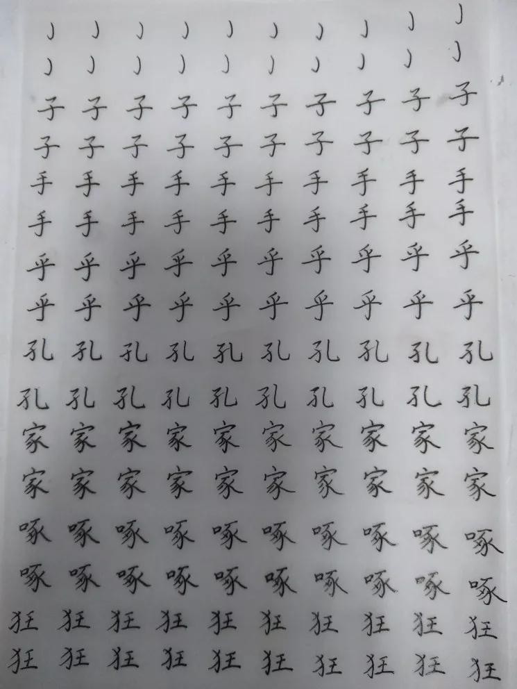 书写感受:弯钩有两种形态。一种较高,弯钩的弯度较小,上下对正。一种较低,弯钩的弯度较大,上下对正。书写过程中要注意两种形态。