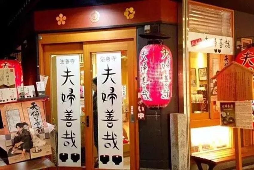 在这里,有一间老铺叫“夫妇善哉”是家创业于1883年的红豆汤圆店。1940年,小说家织田作之助以法善寺横町为背景,写了成名作《夫妇善哉》,后来被改编成电影大获好评,小店也一炮走红。与别处不同,一人份的红豆汤圆被分成两碗,放在同一个托盘里,还送两片山椒昆布解甜腻。