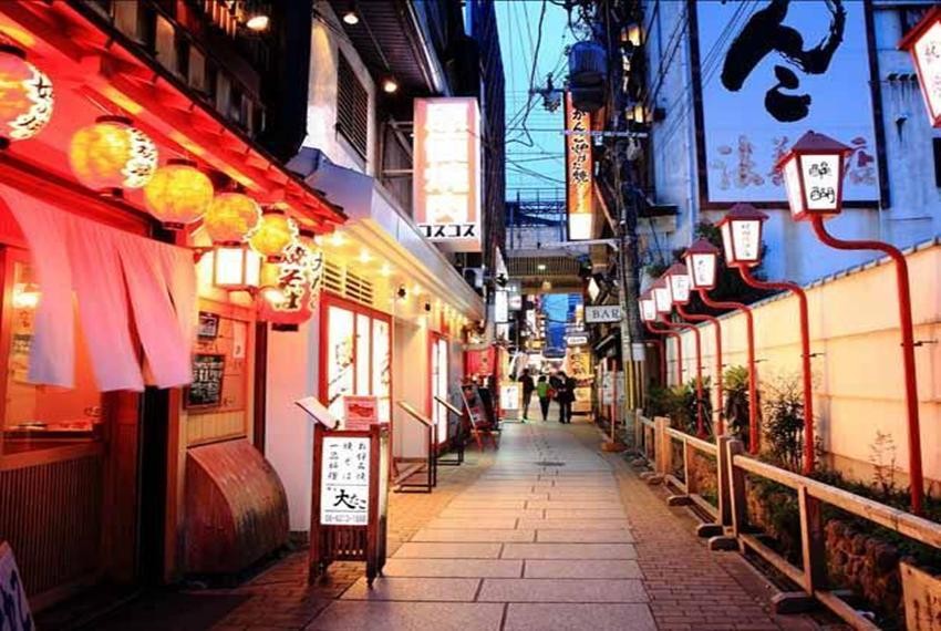 从道顿堀川沿岸通往南边的一条道上有座建于17世纪的法善寺,寺前挂着灯笼,黄昏时分总会染上一层淡淡的桔黄色。法善寺前那条路由石板铺成,称为“法善寺横町”,路边一些房屋有着漂亮的格子门,散发着沉稳宁静的气氛,不禁让人追缅17世纪江户时代的风情。