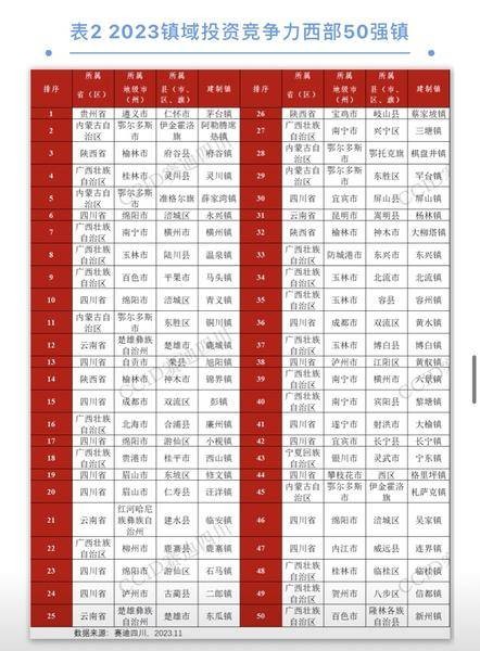 在“2023镇域投资竞争力西部50强”里,陕西有府谷镇、锦界镇、蔡家坡镇、大柳塔镇入选。