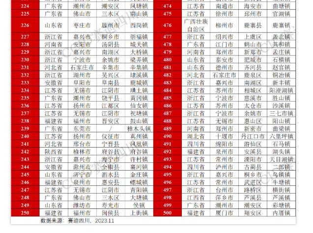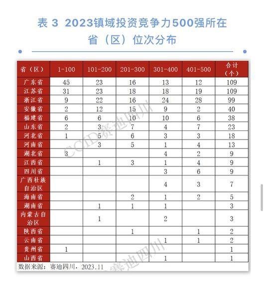 11月27日,赛迪四川正式发布了“2023镇域投资竞争力全国100强、500强暨西部50强”,形成“2023镇域投资竞争力500强暨西部50强”榜单。其中提到,整体地域分布不均,东部地区数量占优。