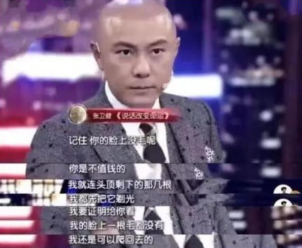 张卫健一气之下把头发剃光了,他要证明:就算我脸上没毛,我也可以爬回去。