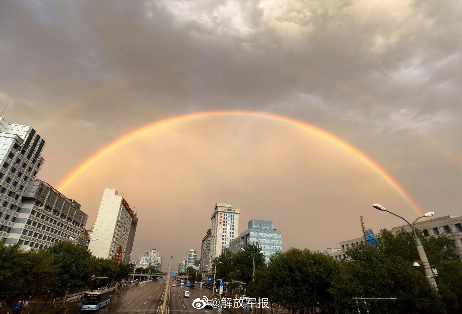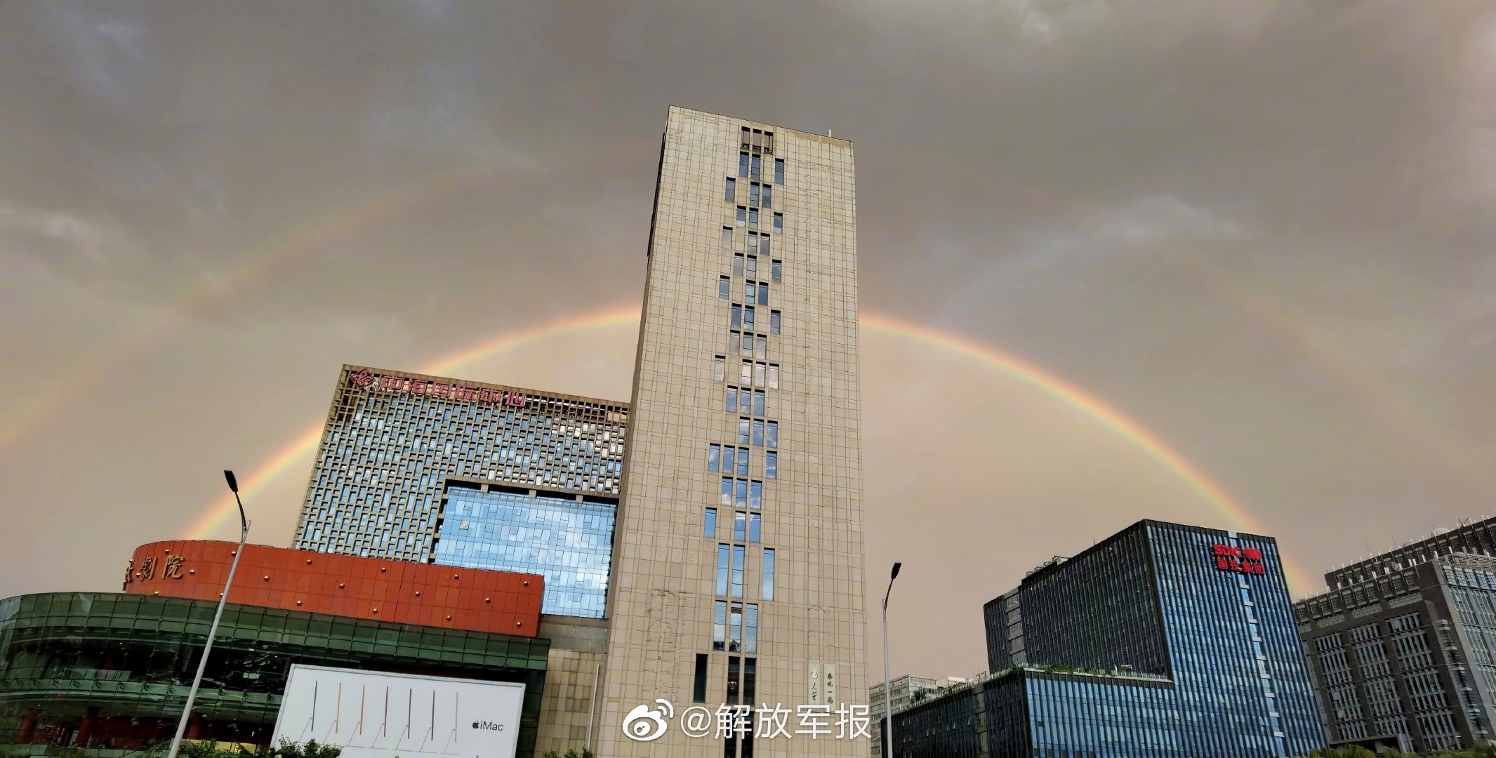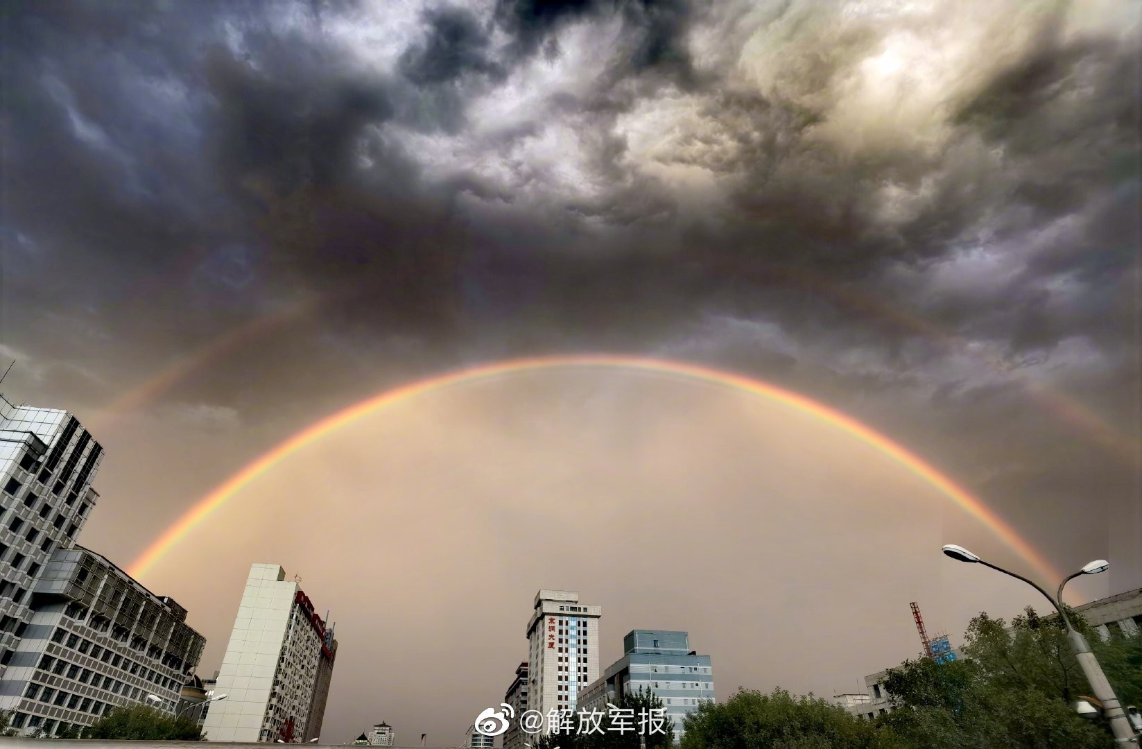 【急雨过后,#北京彩虹#来啦!】8月26日下午,北京一场急雨骤起,阵雨过后,天空出现美丽双彩虹!你看到了吗?(宋明亮 龙建旭)