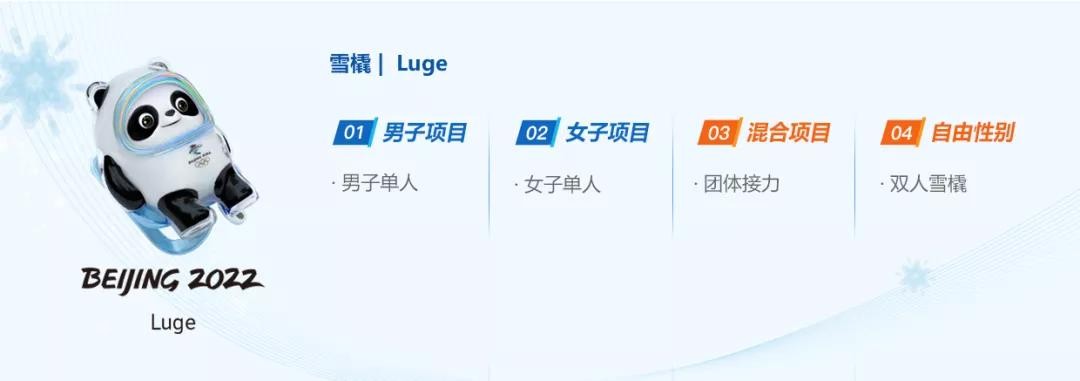 北京冬奥会雪橇比赛共设男子单人座、女子单人座、混合双人座、团体接力赛4个小项。