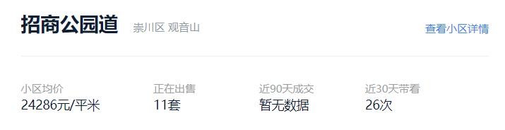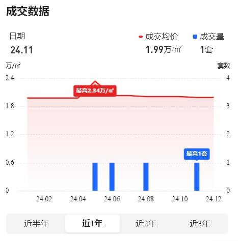 招商公园道至今仅成交了1套二手房,成交时间为2024年6月,建面约199㎡大户型,成交价约2.43万/㎡。