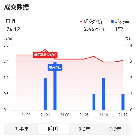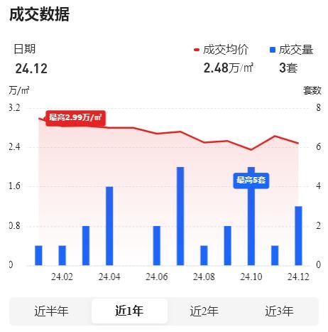万科揽境至今累计成交了3套二手房,其中2024年成交了2套,一套为建面约262㎡大平层,成交价约2.96万/㎡,另一套为建面约118㎡小户型,成交价约2.48万/㎡。
