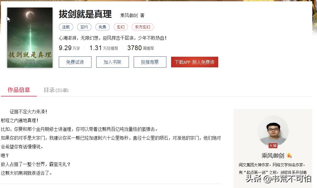 大神作者乘风御剑作者新书《拔剑就是真理》