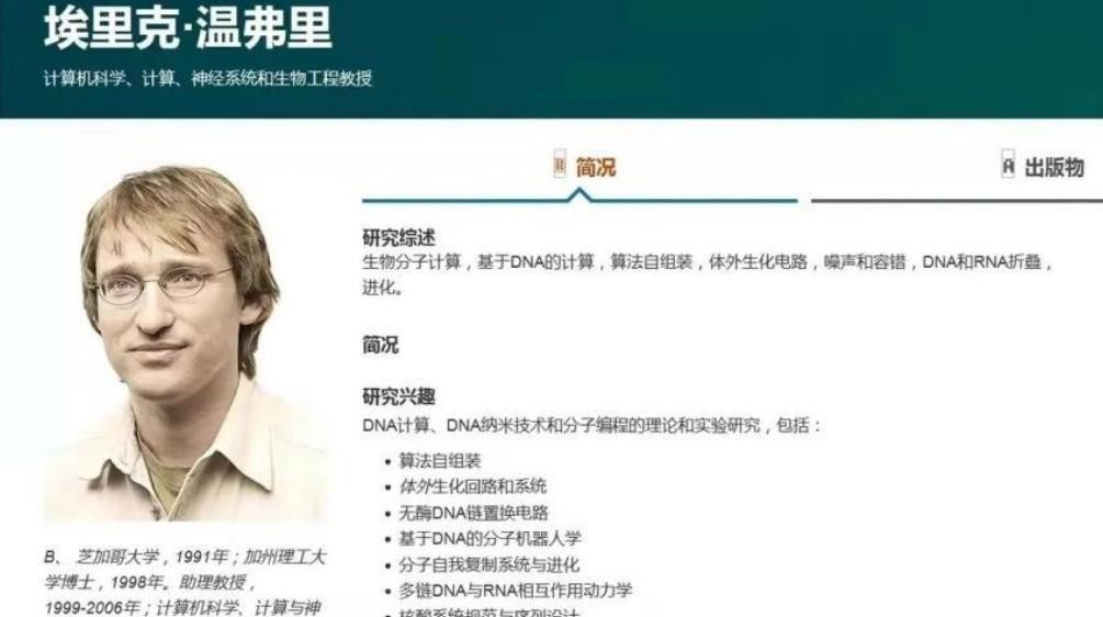 2007年,钱璐璐接待了一名远道而来的学者埃里克温弗里,作为世界顶级科学家,埃里克的主要研究方向是生物学与计算机科学。虽然只有38岁,却在学术领域做出了许多杰出贡献,更是诺贝尔奖的竞争者之一。