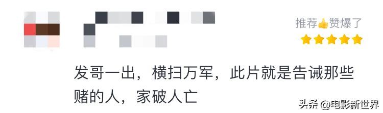 也有观众激动地赞爆了这部电影,他说,发哥一出,横扫万军,此片就是告诫那些赌的人,家破人亡。