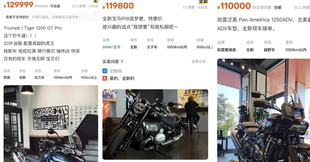 大贸降价潮最早在2023年就已经出现,当时不仅是本田、川崎,而是各家大贸品牌都在对自家部分车型进行处理,比如哈雷泛美、宝马R18,外加凯旋1200大老虎,这些车的官方指导价最差也要18万起,但最后的清仓处理价只要10万出头。