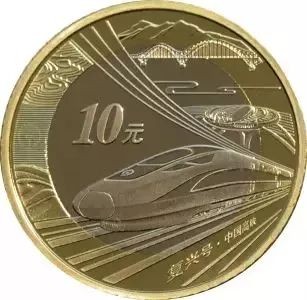 高铁币正面图案为国徽 背面主景为“复兴号”动车组