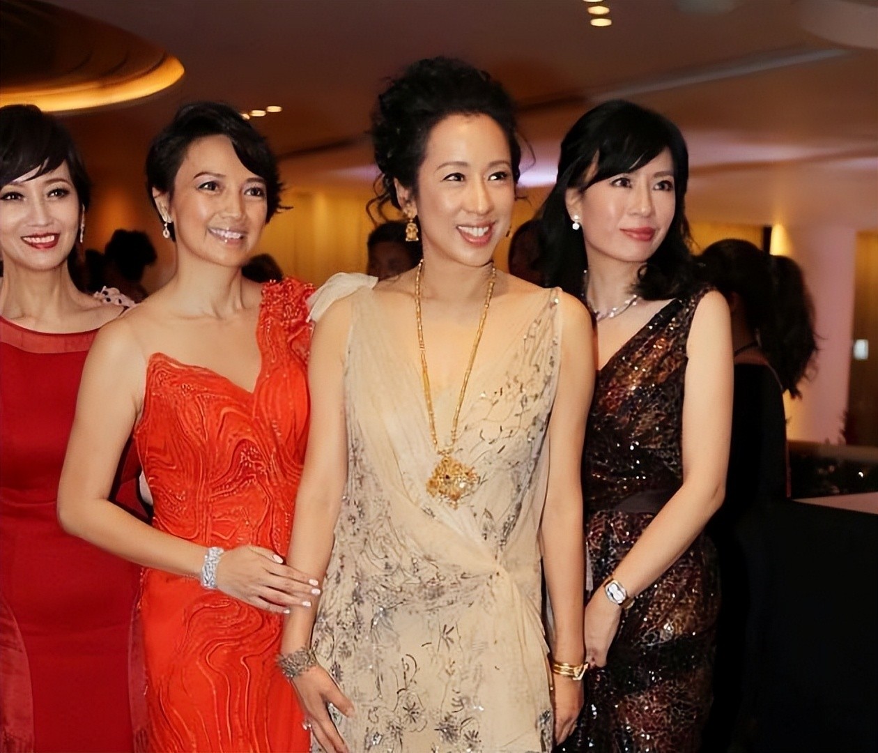 郭晶晶婆婆与二婚老公合影,富态身材穿薄纱裙,65岁美出新高度