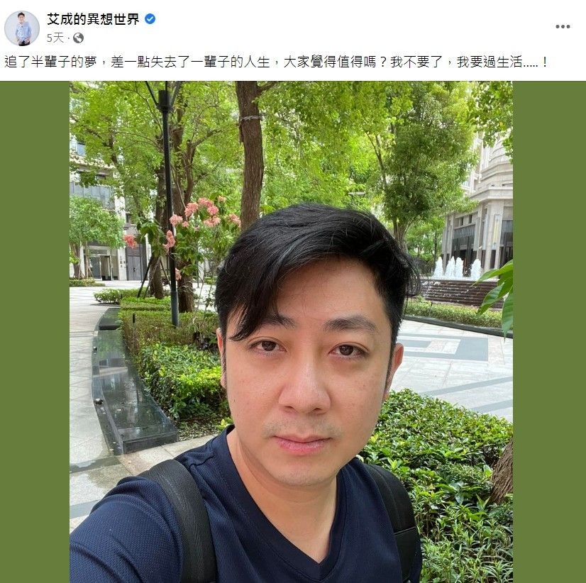 踏入8月,艾成多次在社交网发布灰色言论,令人感受到他的低落情绪: