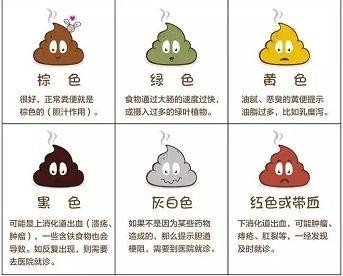 一般来说粪便有5种不同的颜色,反映了人体不同的健康状态: