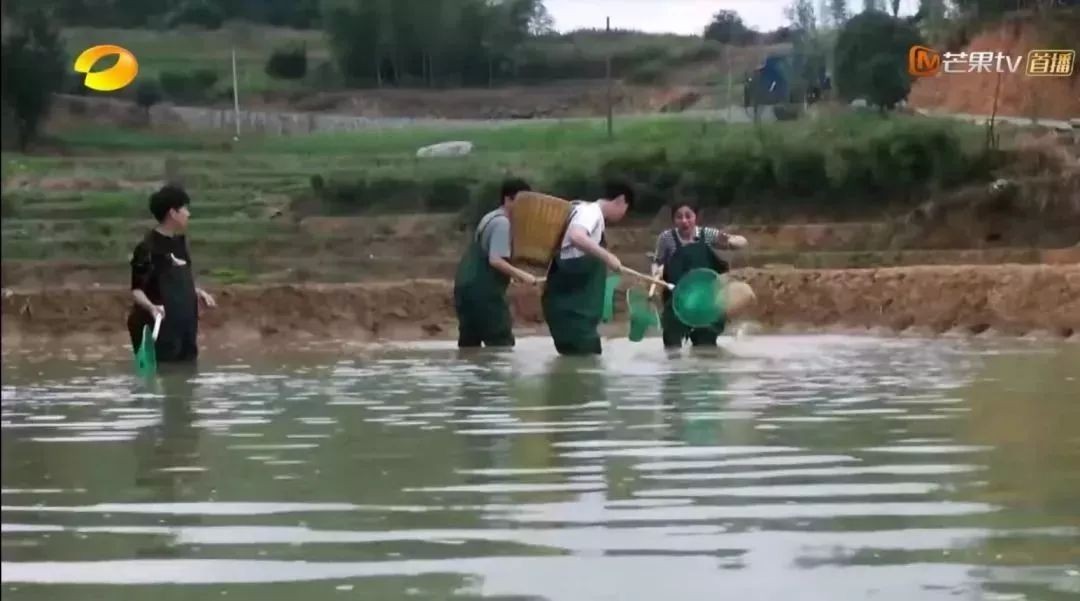 不仅如此,小小的鱼塘看似平静,但是底下却有非常多的大鱼,进去捕捉的时候鱼多得往天空中跳。