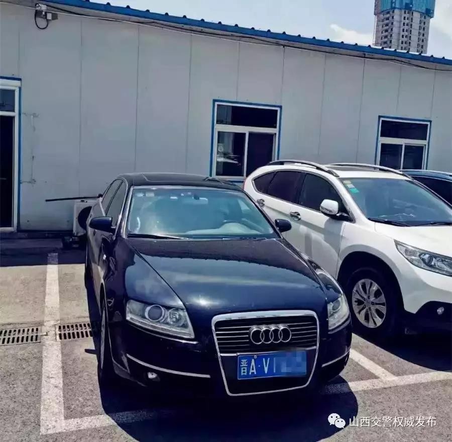 一辆号牌为晋AV1***黑色奥迪车