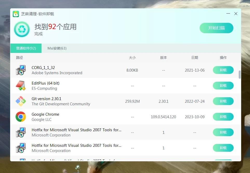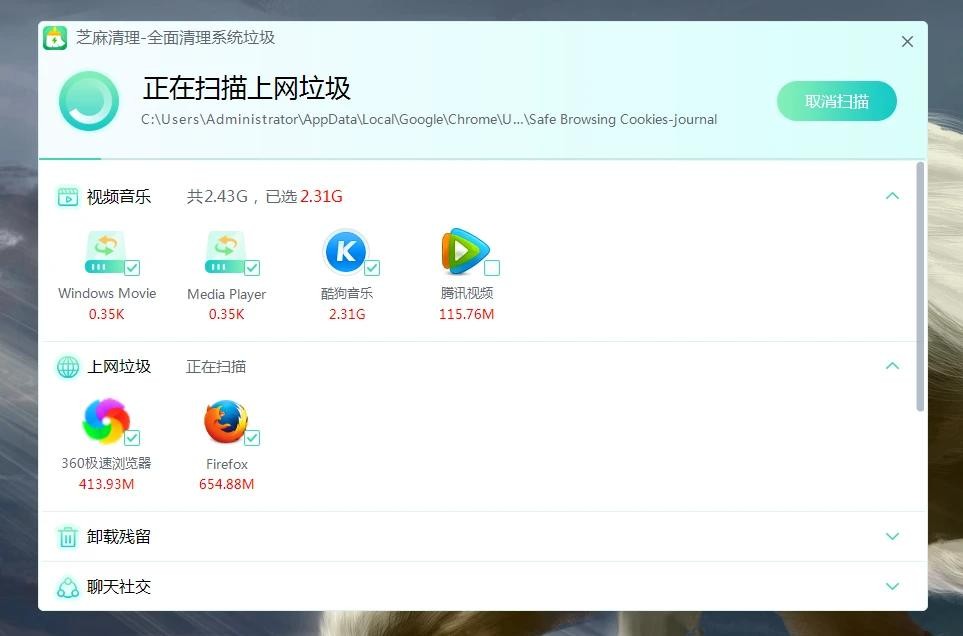 第一步:芝麻清理--电脑垃圾清理,把电脑的垃圾快速找出来并清理掉;