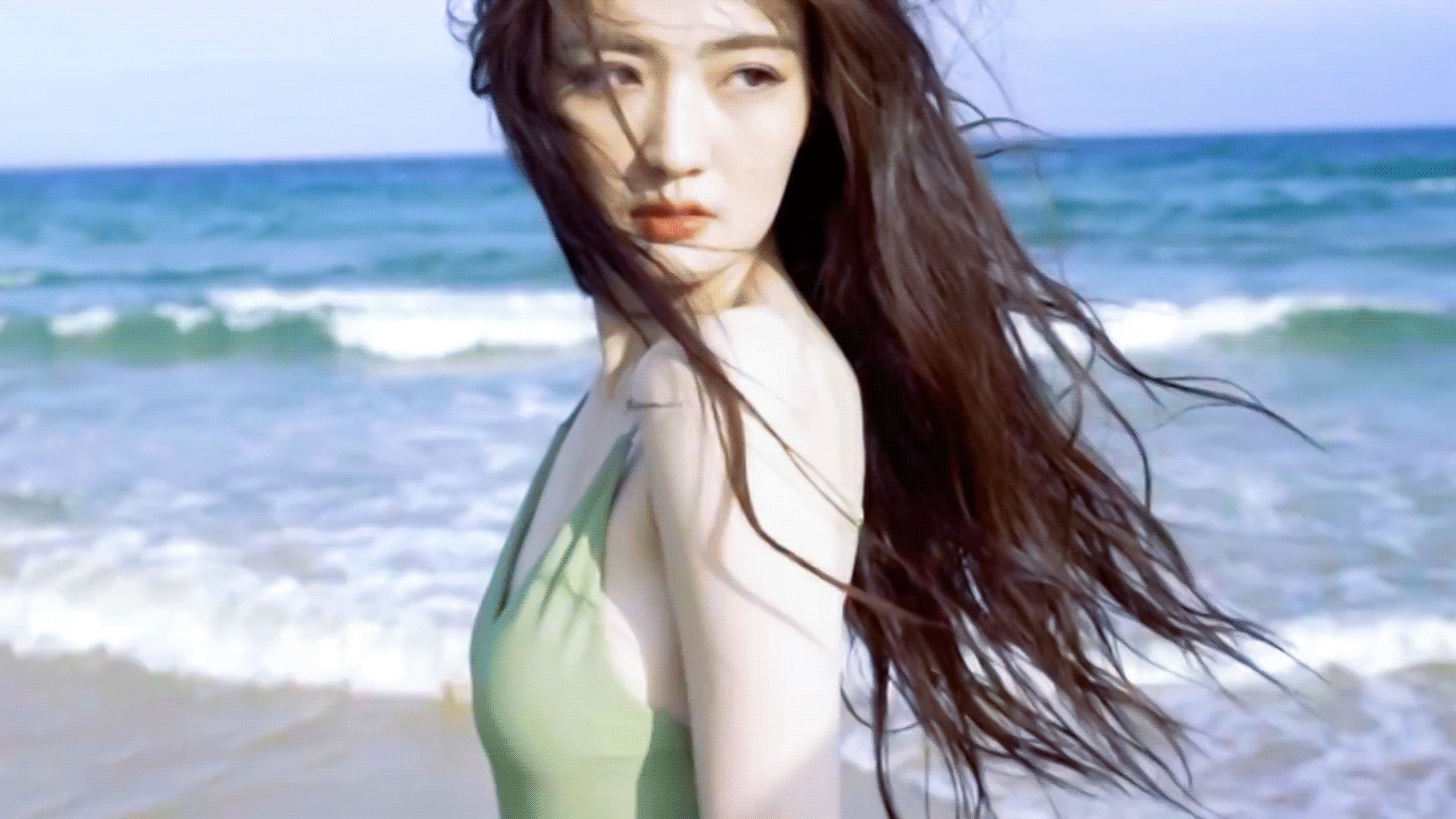 近镜头的徐璐,一脸陶醉在海风的拍打中,闭上双眼,感受海的胸怀,让人流连忘返。