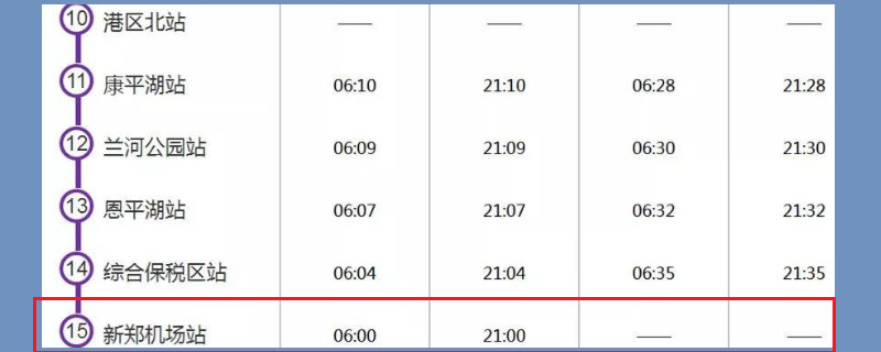 新郑机场地铁的时刻表