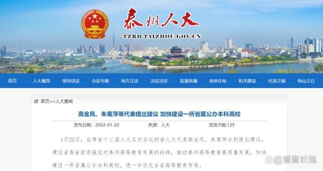 近日在江苏省召开的人代会上,两位代表提出将泰州学院升格为省属公办本科高校,等待条件成熟再向教育部申报更名泰州大学!这也意味着泰州学院本身是市属高校,得到江苏省的支持力度比较小。如果真的申请成功,泰州学院成为省属高校,支持力度将会加大,升格泰州大学自然希望大增!