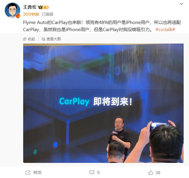 IT 之家 5 月 31 日消息,在今日举行的 CO:TALK 活动上,领克汽车销售有限公司副总经理穆军表示:领克大约有 48% 的用户在用 iPhone,所以我们也在计划 CarPlay 上车。
