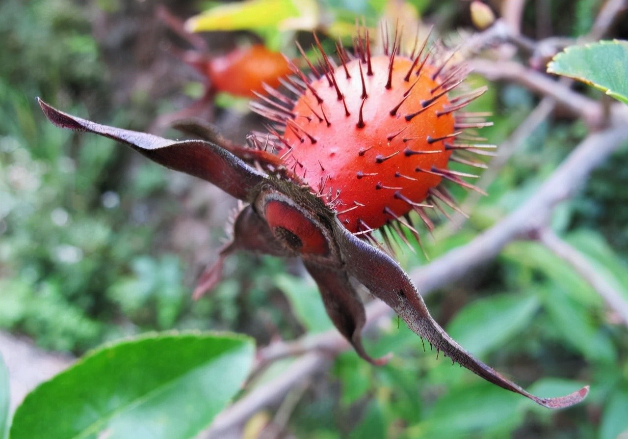 金樱子这种野果子,吃过的人肯定非常的少,它长得像一个小小的刺猬,满身都是刺,在变红的时候是可以直接摘下来吃的,这是一种小浆果,里面有一些汁液,时间太久远了,味道已经记不清是什么味道了。金樱子是可以入药的,它有非常好的治疗效果,具有固精缩尿,固崩止带,涩肠止泻之功效。