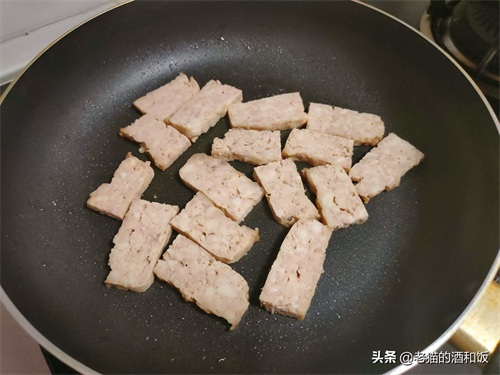 这点午餐肉,我家俩人一共吃了三顿。最后留了几块,我用平底锅煎了之后,作为下酒菜吃了,很好的体验呢,没有添加剂,肉香十足。下次打算再做一盒,用来配面条,炒米饭。