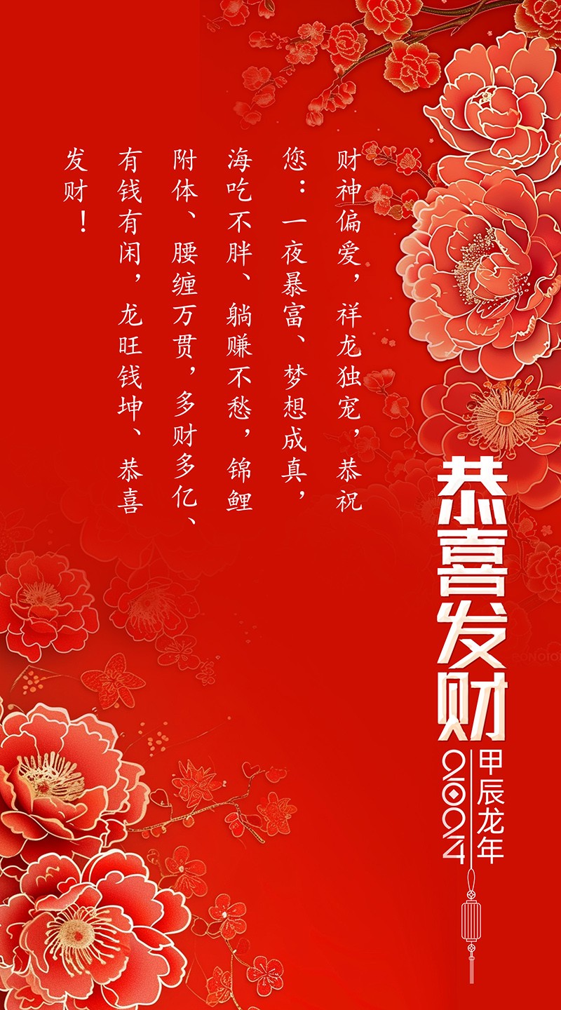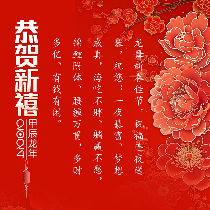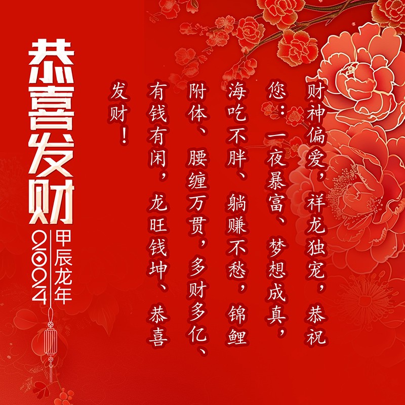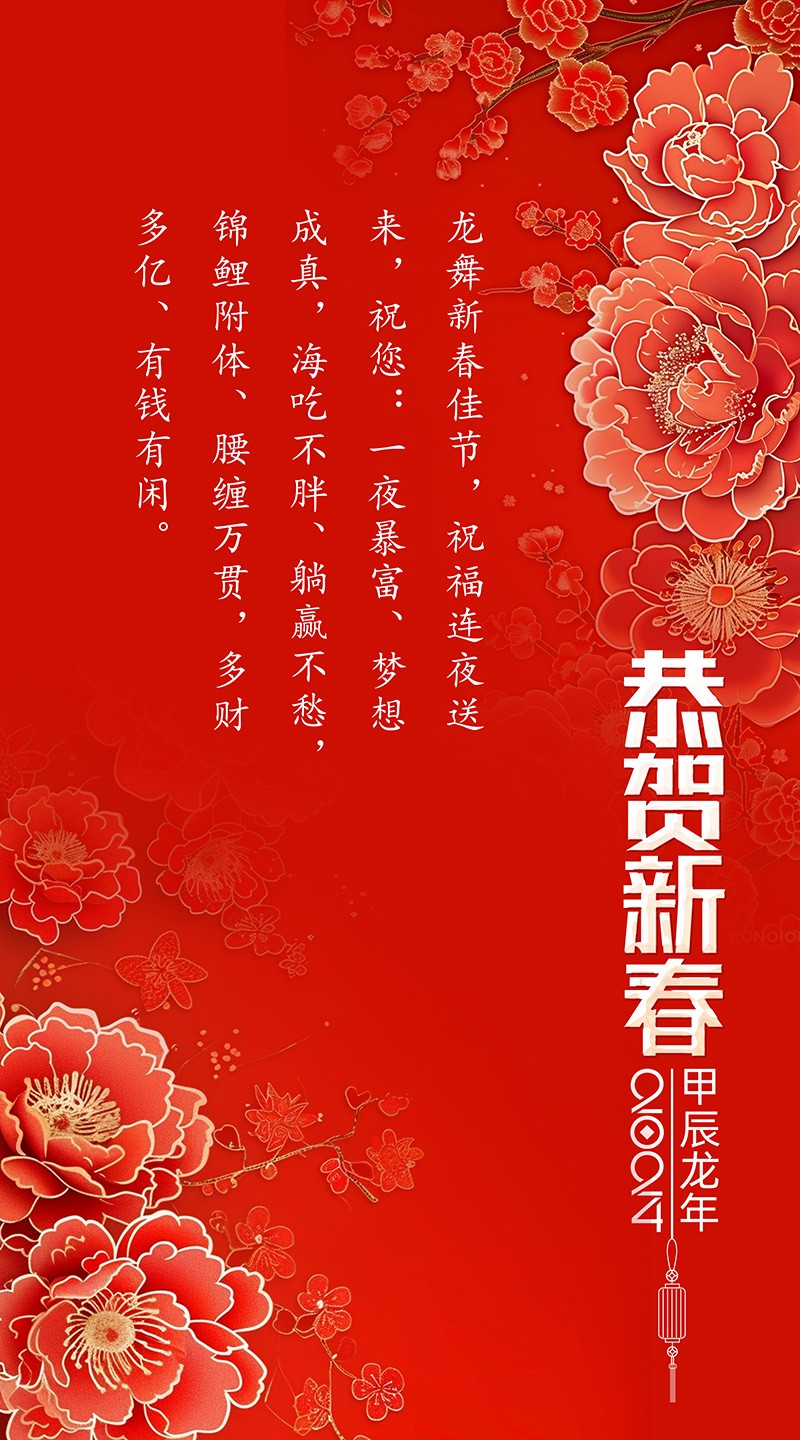 除却传统的贺年方式,互联网的发展也让拜年的形式从传统模式到了网络里,网络拜年,一张好看的壁纸或者图片,一句温暖的新年祝福语,是打开拜年的新模式!最后,祝大家新春大吉,龙年龘龘,前程朤朤,财运茻茻!