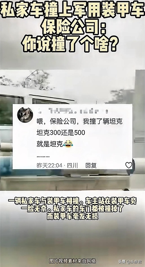 重庆一私家车把坦克给撞了,一脸惆怅!网友:保险公司“天塌了”