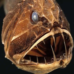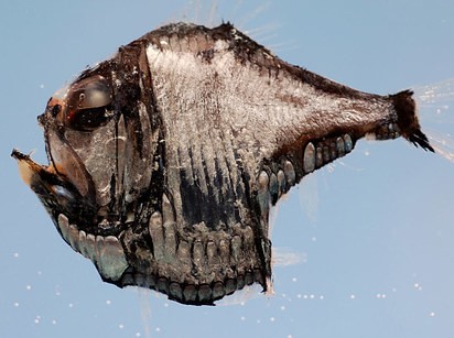 6. 尖牙鱼。这种住在深海的鱼类所拥有的牙齿与身体比例,就科学家研究是所有鱼类最大的。这样才能好好品尝你呀!
