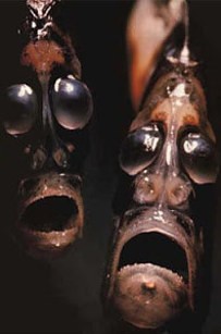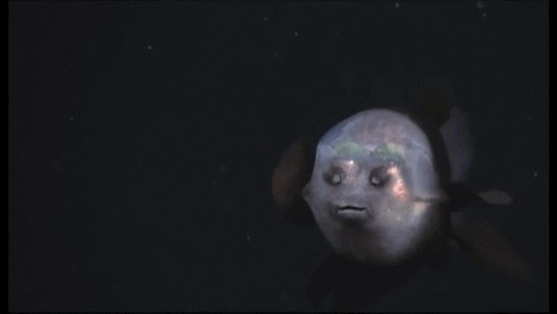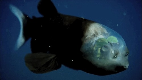 13. 后肛鱼科。这种鱼的头是透明的,你完全可以看清楚他脑子到底装了什么,你看到的黑黑那两颗并不是他的眼睛而是他的嗅觉器官,里面绿绿的才是他的眼睛。(恶)