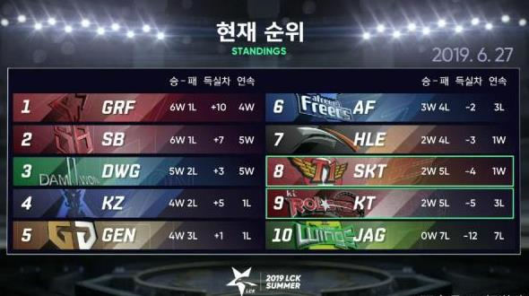 6月27日,英雄联盟LCK夏季赛中迎来了SKT和KT两支战队的对决。SKT和KT两支通讯社战队曾经都是老牌强队,s8赛季在LCK赛区拥有者数一数二的顶级实力。今年,SKT和KT却同为难兄难弟,一起在LCK联赛积分中垫底。