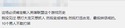何止是下饭,网友们一针见血的指出,这应该属于两支队伍的史诗级菜鸡互啄。打架不敢打,大龙想打又想包人,最后变成被包,10个男人不敢打架,这场比赛应该载入英雄联盟游戏历史。