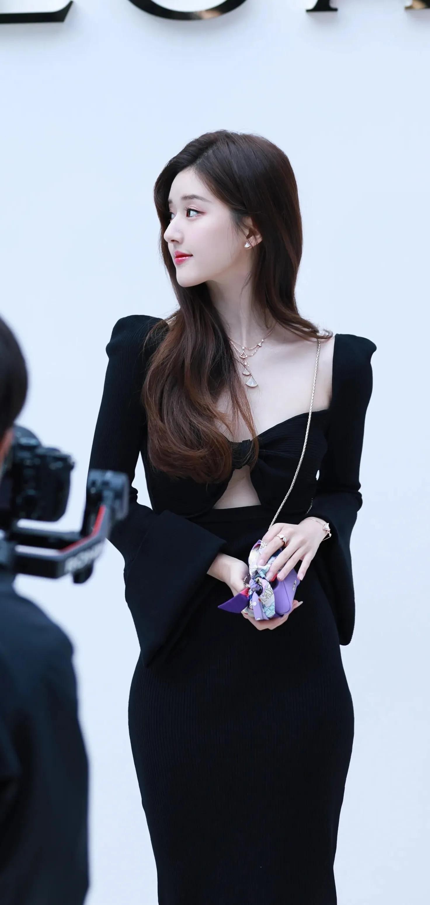 赵露思美图:黑色抹胸长裙,优雅大气,端庄美丽