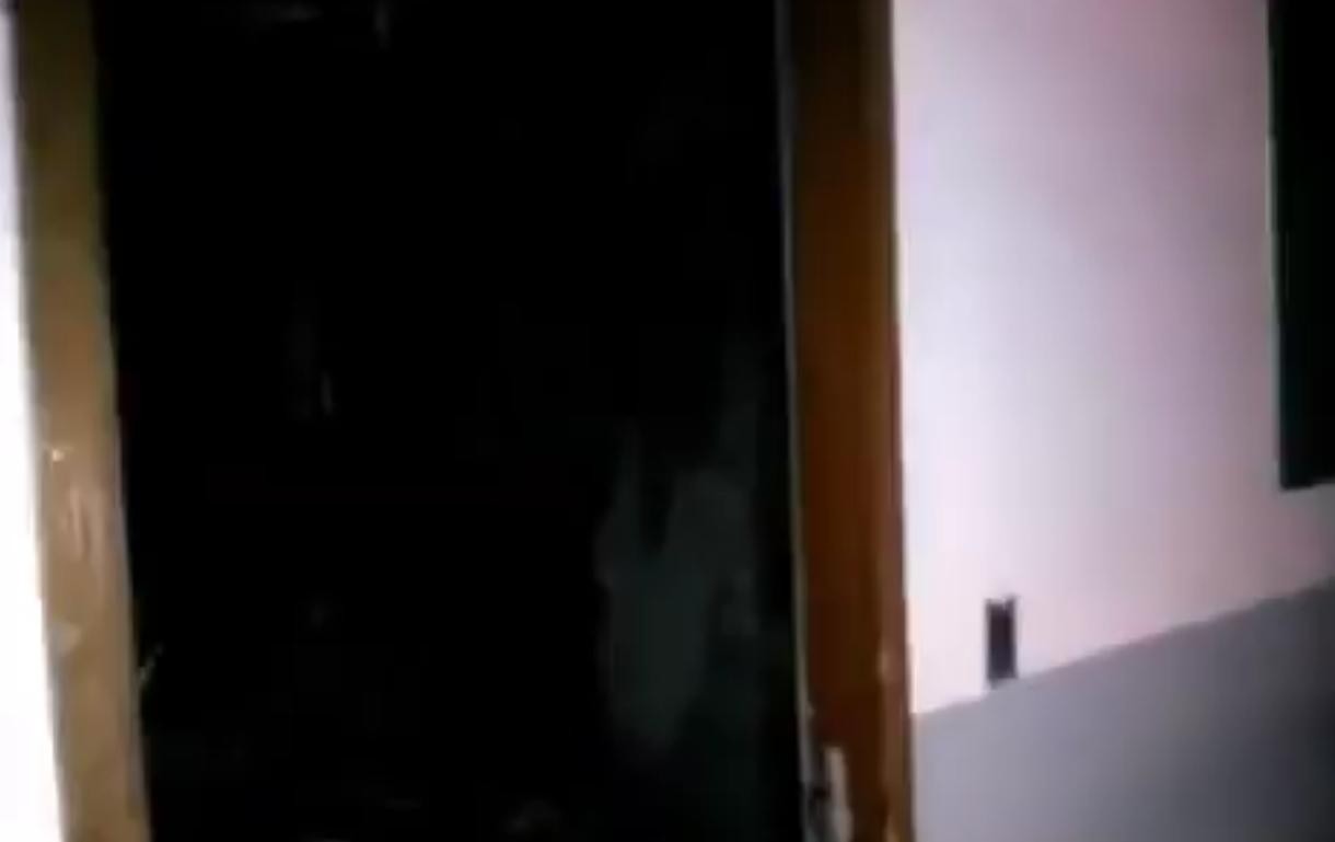 而且视频拍不到他的下半身,所以有可能是他用脚踢了一下门,然后假装受到了惊吓,逃跑,视频戛然而止,给看视频的观众,留下了无限的遐想。