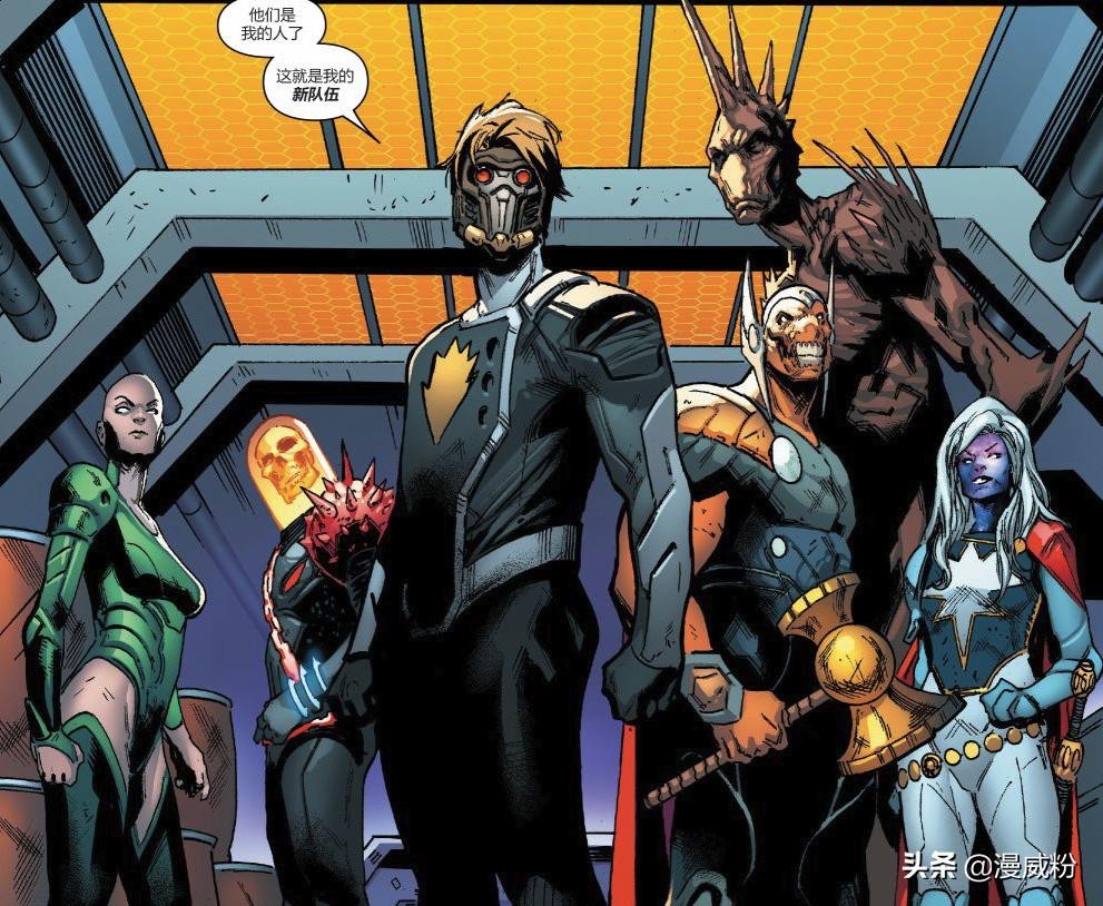 在漫画《银河护卫队》V5中,银河护卫队成员角色大换血。