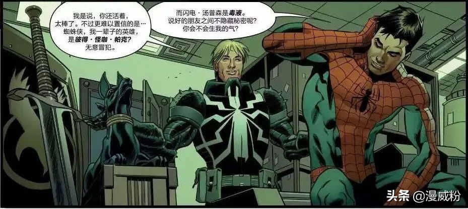 在之后的漫画中,闪电被洗白,他向彼得道歉,并获得了原谅。