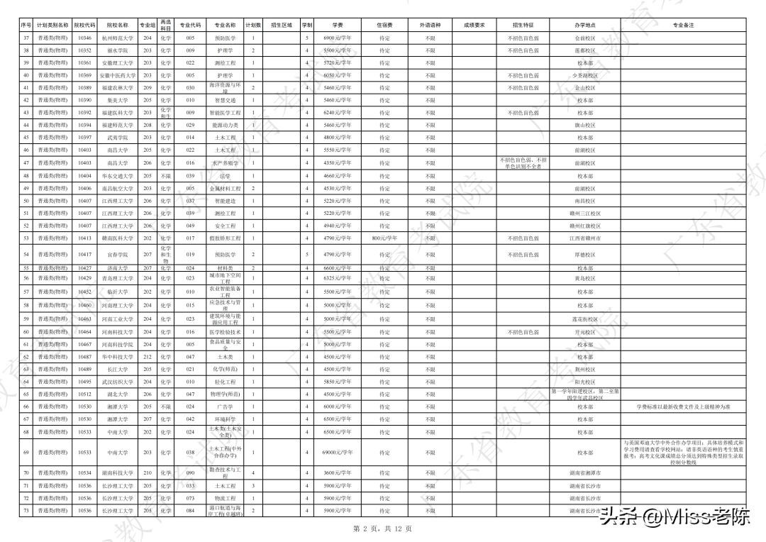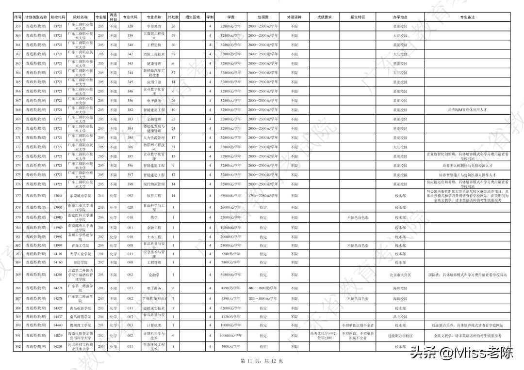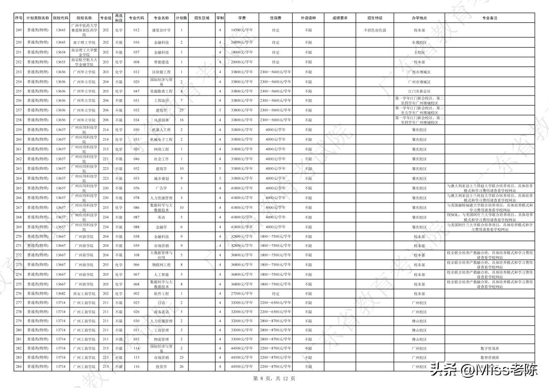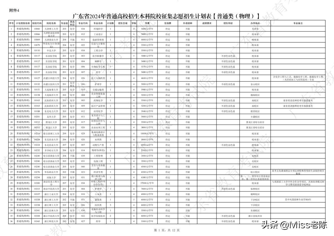 2、 广东省2024年普通高校招生本科院校征集志愿招生计划表【普通类(物理)】