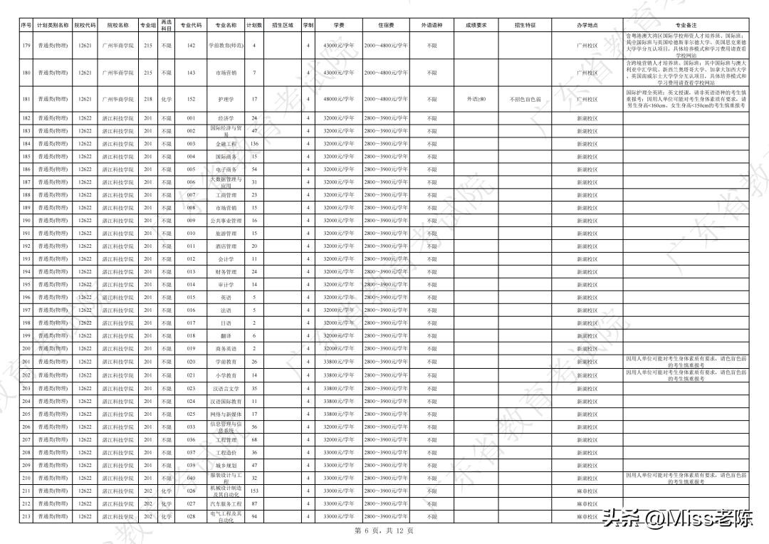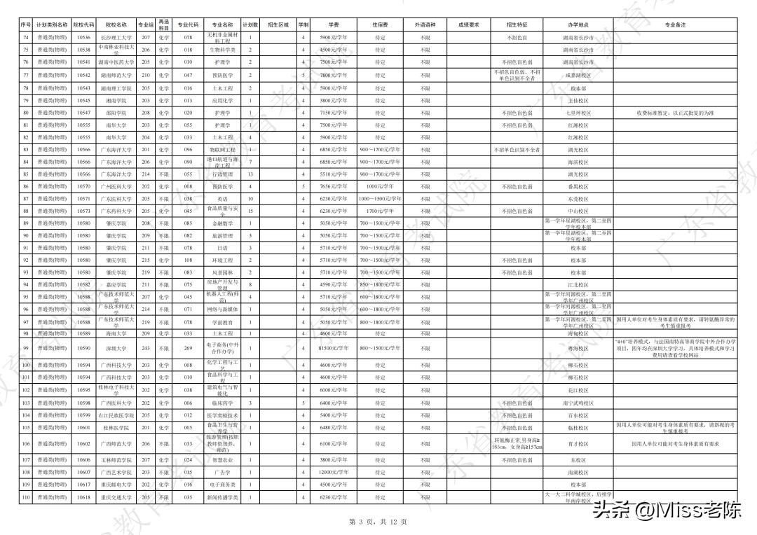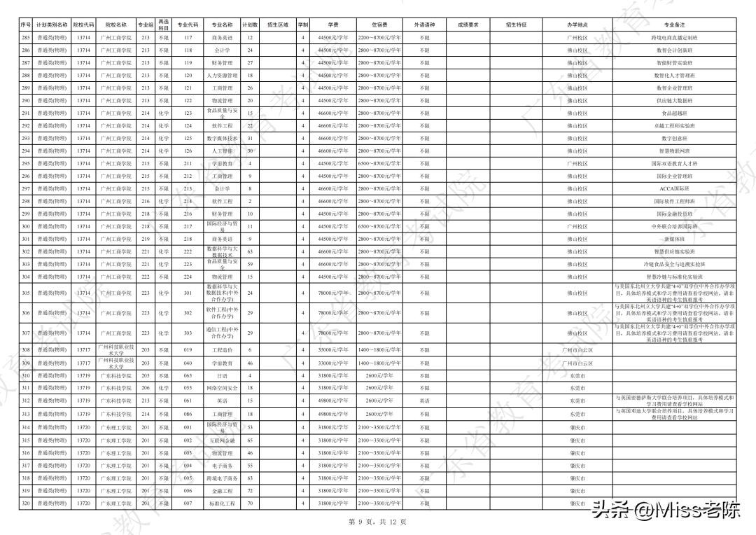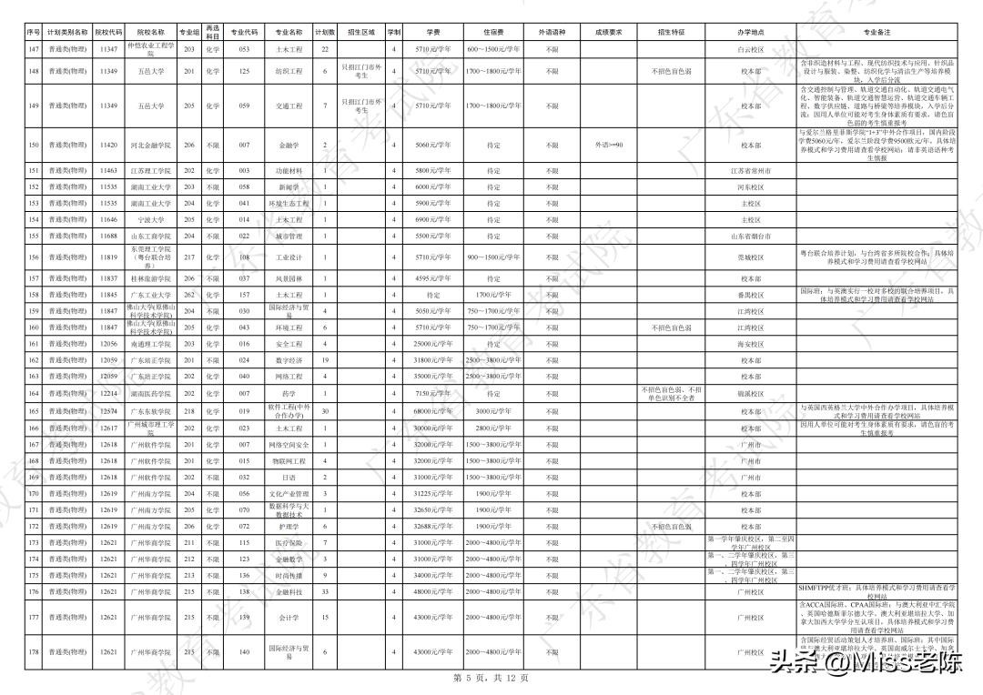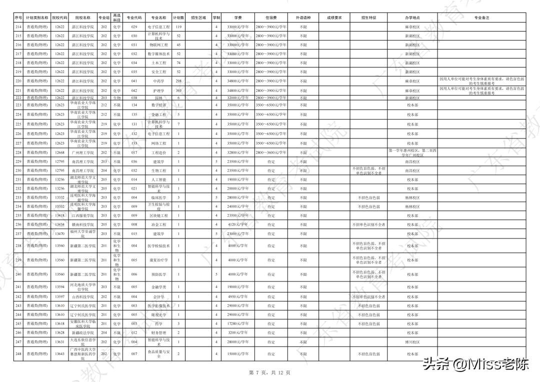 2、 广东省2024年普通高校招生本科院校征集志愿招生计划表【普通类(物理)】