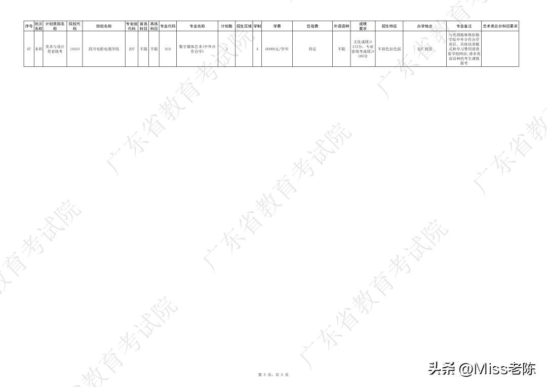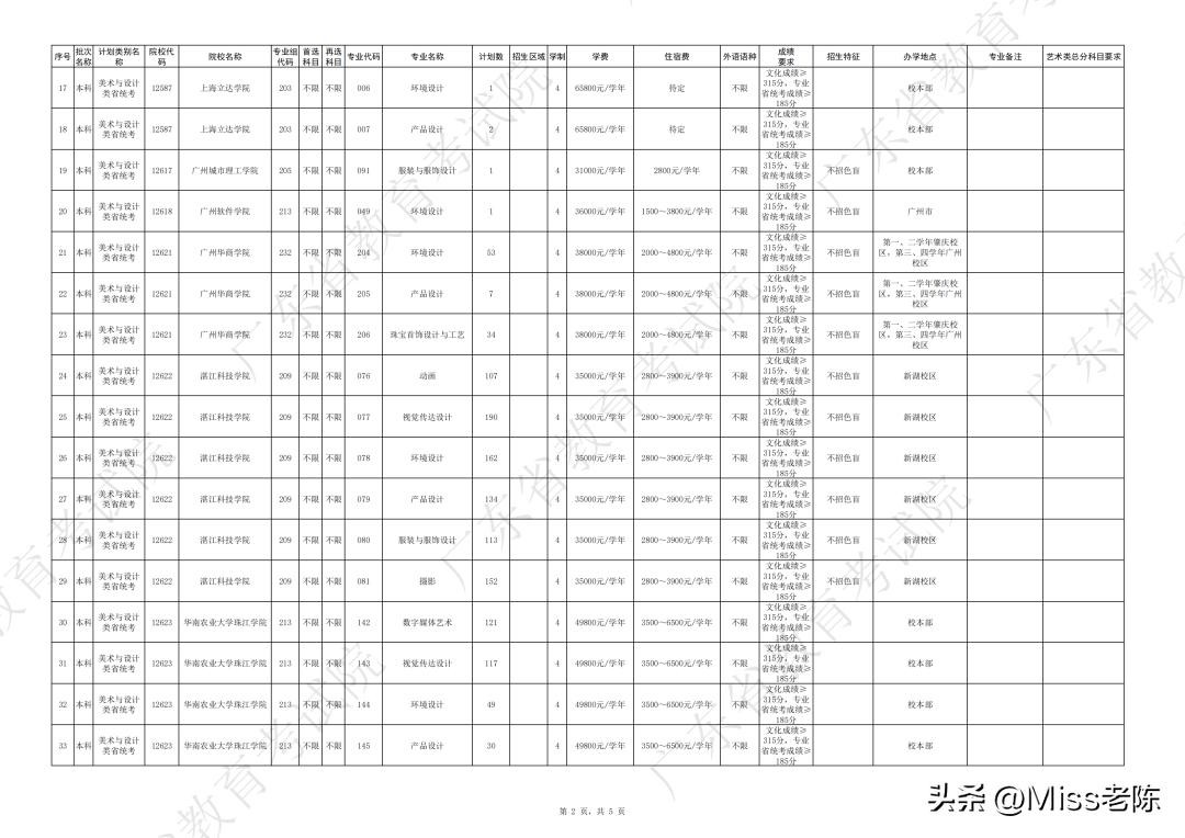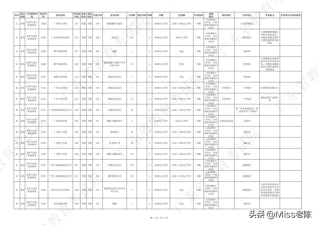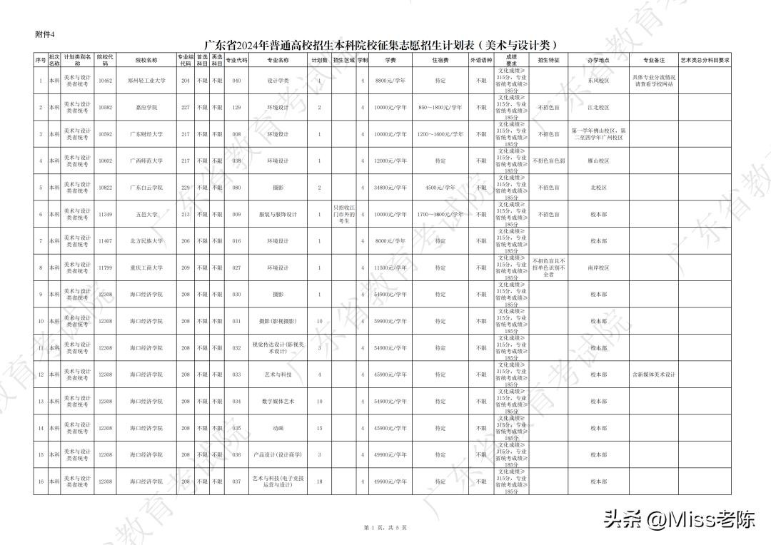 4、 广东省2024年普通高校招生本科院校征集志愿招生计划表(美术与设计类)