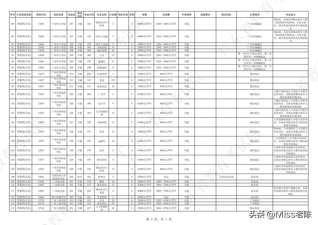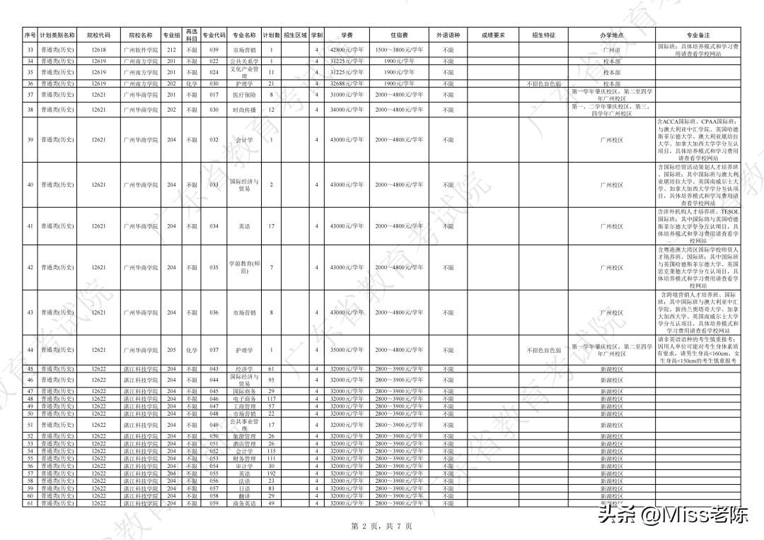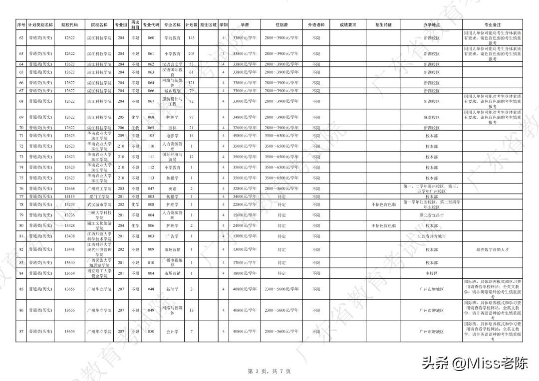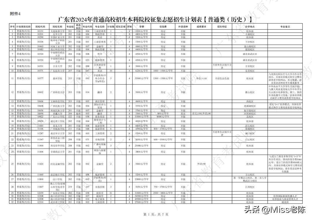 1、 广东省2024年普通高校招生本科院校征集志愿招生计划表【普通类(历史)】