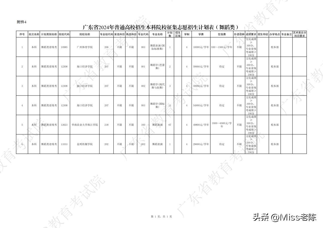 6、广东省2024年普通高校招生本科院校征集志愿招生计划表(舞蹈类)