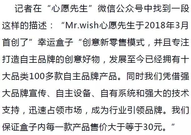 在调查中,记者先后数次扫开幸运盒子,除项链外,还有纳米喷雾补水仪、男士洗面奶等。这些商品只能在其官网上找到,标价均在30元以上,在各大电商平台则均未见到相关商品售卖信息,故难以判断出产品的真实价格,可见对于“售价超30元”的承诺,商家难免有自说自话之嫌。